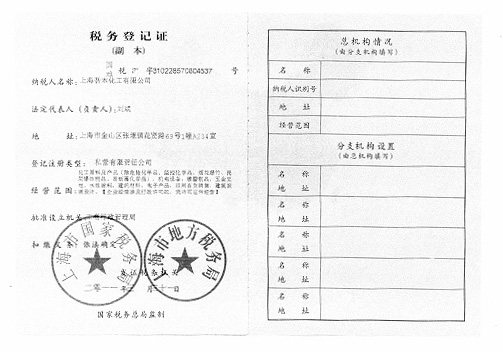 办公地址:上海市高平路809弄50号 901室生产厂址:上海市金山精细化工园区金石公路